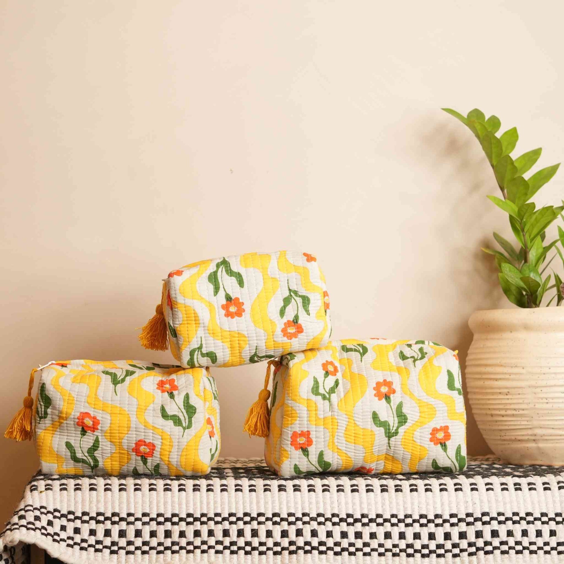 • Type & Use: Handcrafted pouch sets, ideal for organizing essentials, gifting, travel, and home décor accents